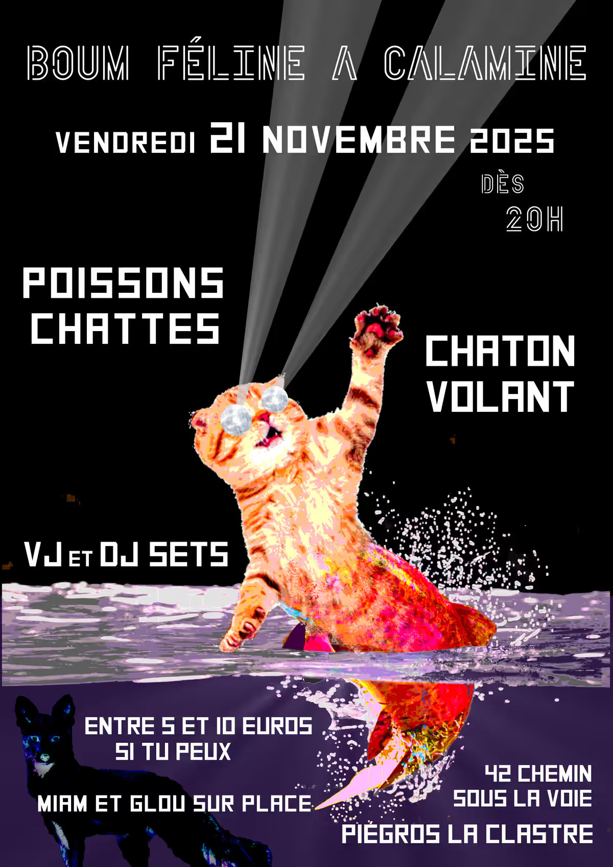 POISSONS CHATTES (Duo de Disc Jockey) et CHATON VOLANT (DJ et Vidéo) seront réuni.e.s pour la première fois dans l’unique but de nous faire danser et danser et danser et kiffer comme des zinzin.e.s !!!!!