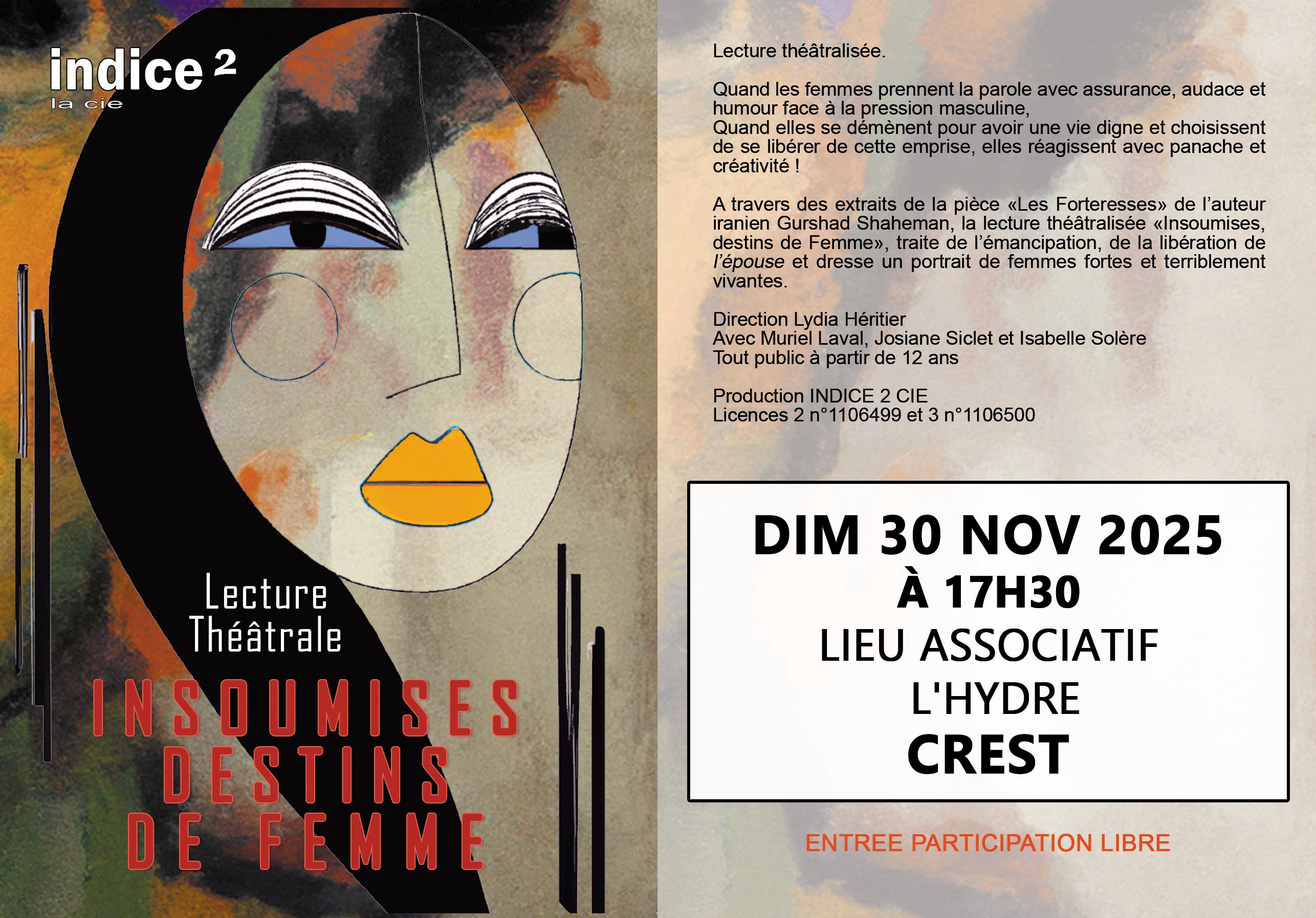 A travers des extraits de la pièce « Les Forteresses » de l’auteur iranien Gurshad Shaheman, la lecture théâtralisée « Insoumises, destins de Femme », traite de l’émancipation, de la libération de l’épouse et dresse un portrait de femmes fortes et terriblement vivantes.